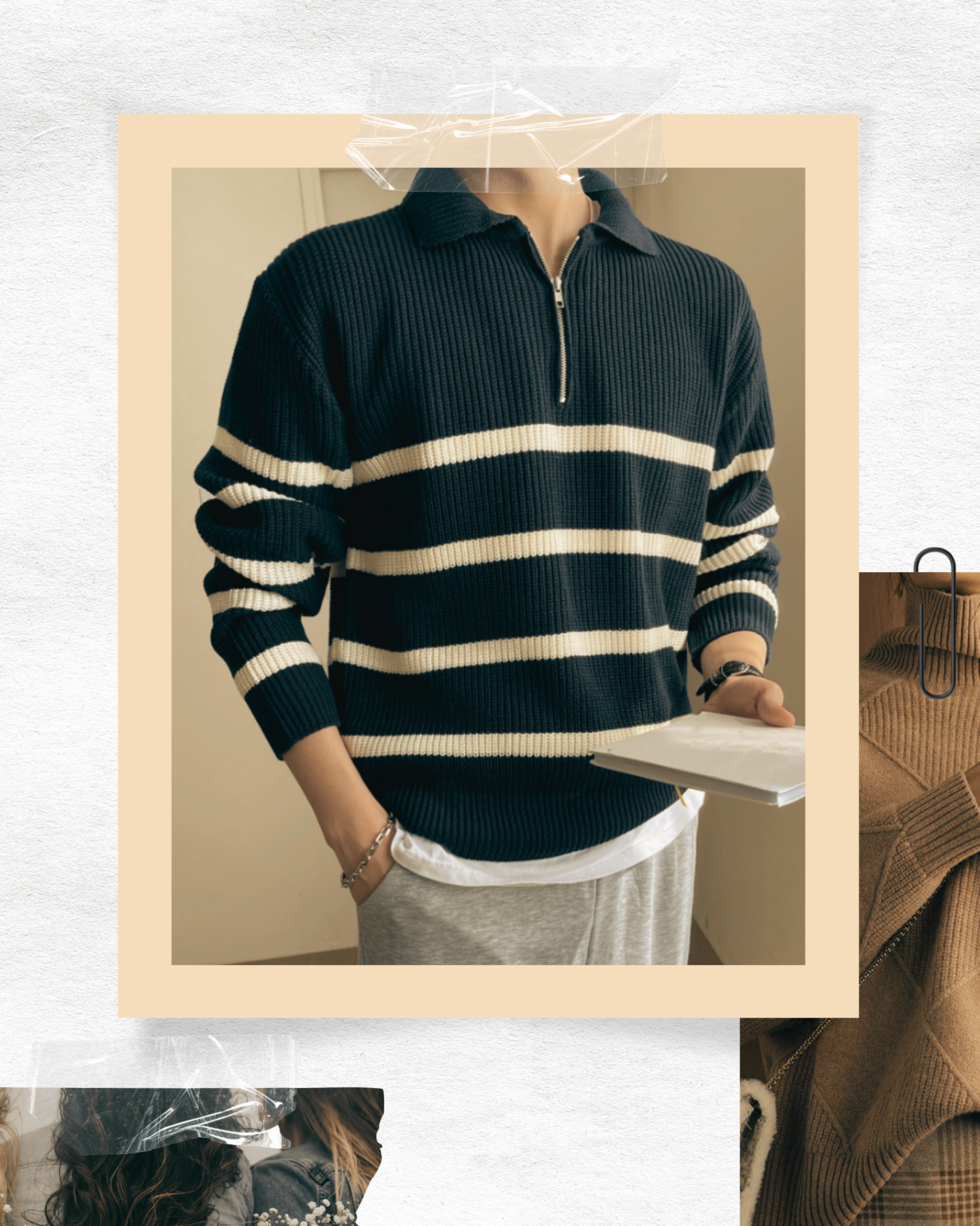 Striped Half-Zip Knit Sweater for Men